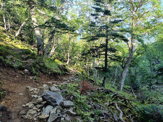 2025/08/24 オーレン小屋周辺はオオシラビソ他針葉樹 標高2330㍍のオーレン小屋周辺から夏沢峠などの稜線直下まで、森林浴で出会いたい針葉樹が沢山自生していました。 元々このあたりも高山植物の宝庫を目当てに登ってくる方が多いところですが、その高山植物が咲く森を作り出すオオシラビソやシラビソ、トウヒ、コメツガなどの針葉樹の木々にも思いを馳せてみてください。 カンカン照りの暑い日でも、樹林帯の中はひんやりして、風も通り心地よい空間が広がってます。 tagPlaceholderカテゴリ: 針葉樹, 八ヶ岳, 信州の山, オオシラビソ, 香浴森林浴®️, オーレン小屋, 夏沢峠, 根石岳 コメントをお書きください コメント: 0