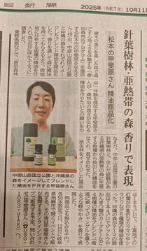 本日の信濃毎日新聞に、香浴森林浴®️オリジナルブレンド精油新発表について掲載していただきました!